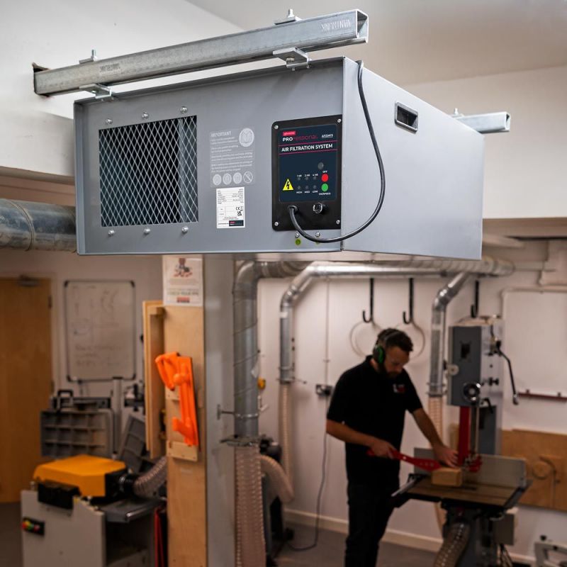 - *This air filter is suitable for removing dry airborne wood dust particles and should always be used in conjunction with a dust extractor.