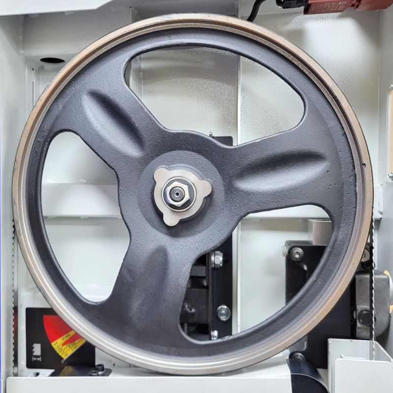 - Solid cast iron wheels are electronically / dynamically balanced & fitted with polyurethane one-piece tyres, designed to run cooler & last longer than conventional rubber tyres. The worm gear & pinion on the blade guard is ultra-smooth and engineered to have minimum flex even when fully extended.