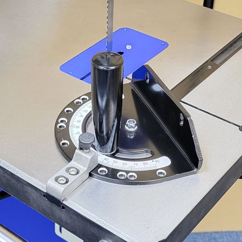 - For crosscutting operations a sliding mitre guide is included. It has an incredible 180 degree rotation with preset stops at 0, 22.5, 30, 45, 60, 67.5 and 90 degrees each way. The preset plunger can be locked out for dialing in any other angle.