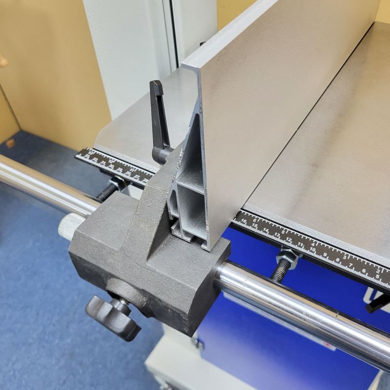 - The parallel fence runs smoothly along a polished solid steel bar. The locking screw gives a positive lock which will not let you down and creep during repeat work. The measuring scale is marked in both Inches and Millimetres. The rigid aluminium high/low fence can be installed in 2 ways to ensure full and precise timber support for both large and small work pieces.