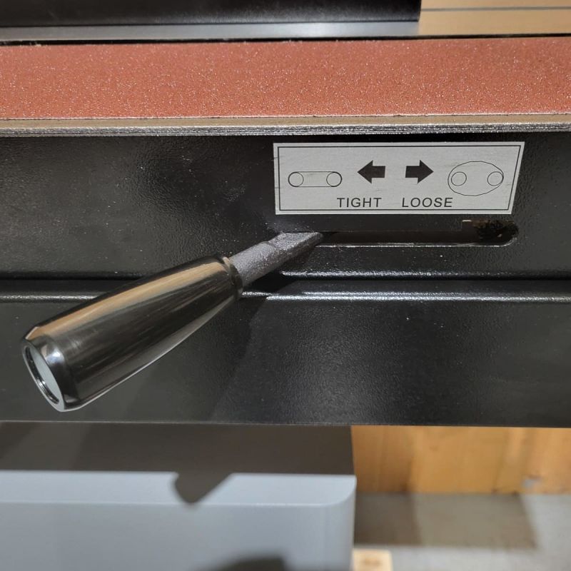 - When sanding with the belt in the horizontal position a parallel guide fence fixes to the main table and can be set anywhere across the width of the belt.