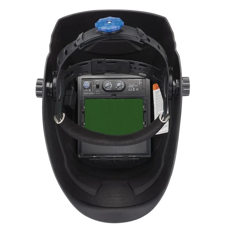 - This auto-darkening welding helmet instantly switches on when the arc is struck and rapidly changes to the required amount of shade.
