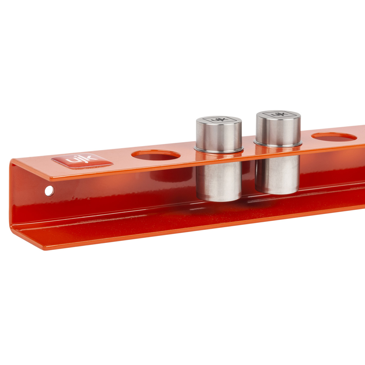 Designed for oragnised makers, the UJK Dog Storage Rack keeps everything from standard Bench Dogs to UJK Super Dogs, Guide Dogs and Parf Anchor Dogs. Precision-cut, slim, wall-mounted design holds up to 8 (19–20mm) bench dogs securely in a row.