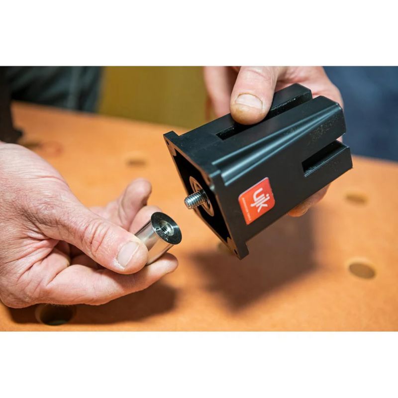 - UJK Clamp Stands take the hassle out of glue-ups by supporting your parallel clamps securely in place. Their precision cut slots keep clamps perfectly aligned, giving the stability needed to position workpieces and apply pressure easily. Acting as an extra set of hands, these lightweight stands streamline setup and boost accuracy. Each stand features a central hole for mounting to a Parf Anchor Dog using an M8 bolt (not included), or corner holes for fixing directly to a board or bench. Designed for versatility in any workshop, they’re compact, robust and built for fast, repeatable clamping.