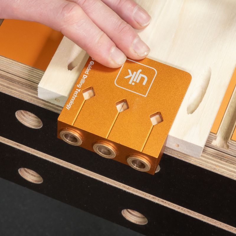- Designed to drill clean, consistent holes either centrally or evenly spaced from the timber edge. It’s the ideal companion to the UJK Pocket Hole Jig to guide accurate alignment and reduce movement while fixing, and can be used as effectively independently.