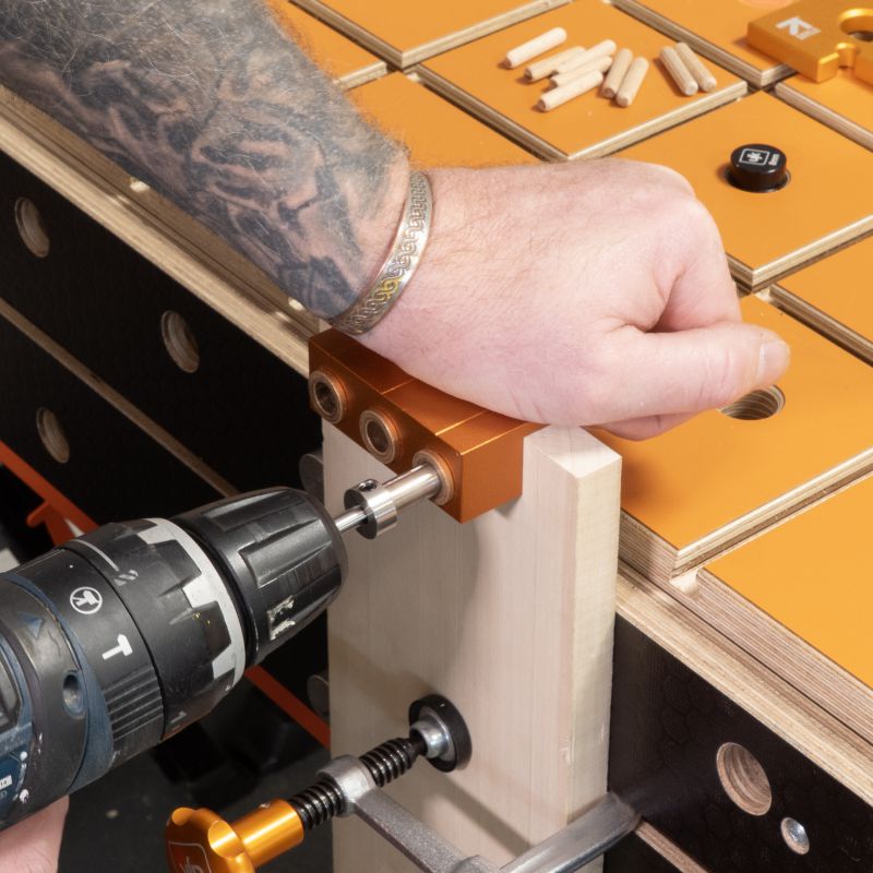 - Compact, robust and easy to use, the UJK Dowel Jig gives woodworkers at any level professional results. British made from anodised aluminium with bronze oilite bushes, offering exceptional durability, corrosion resistance and quiet operation.