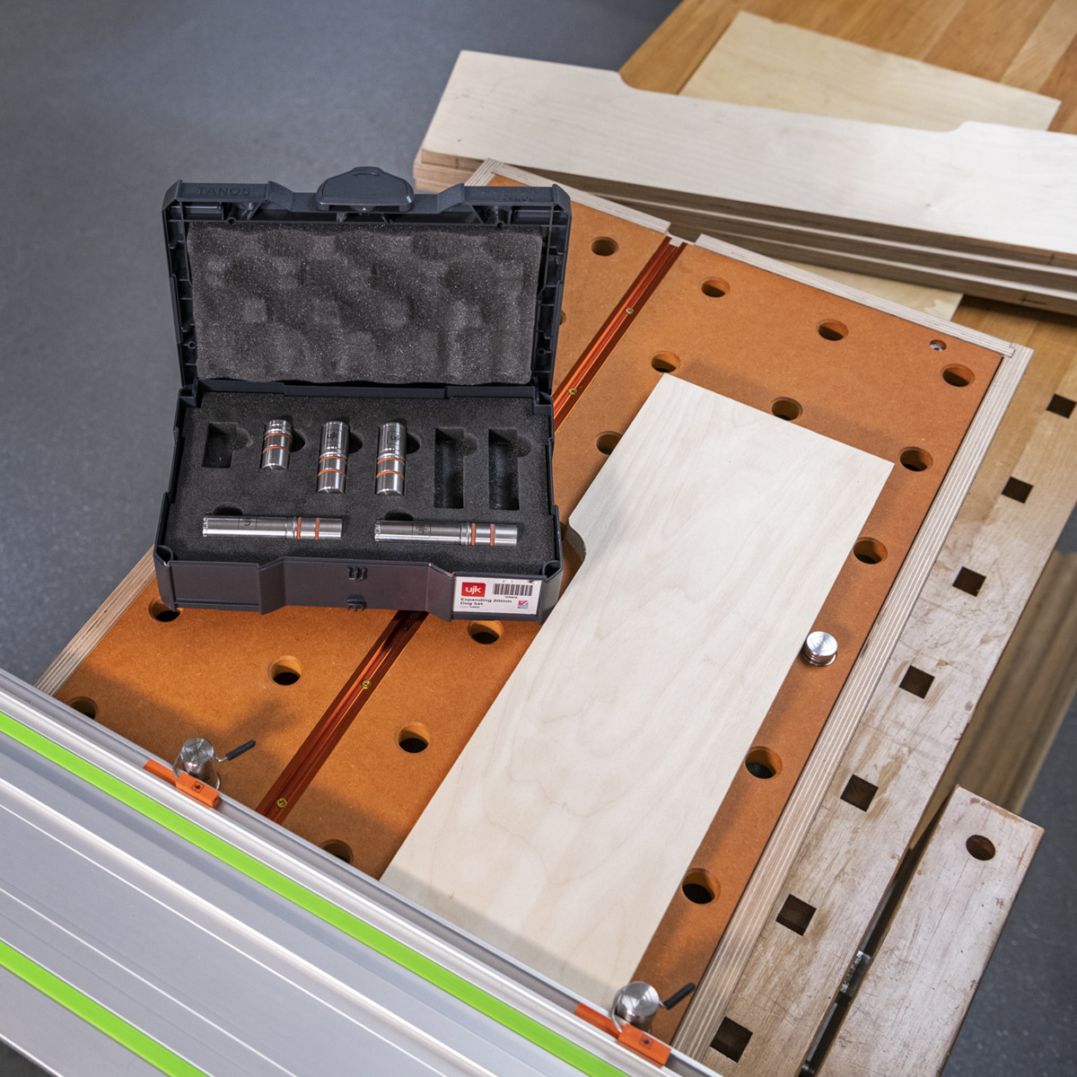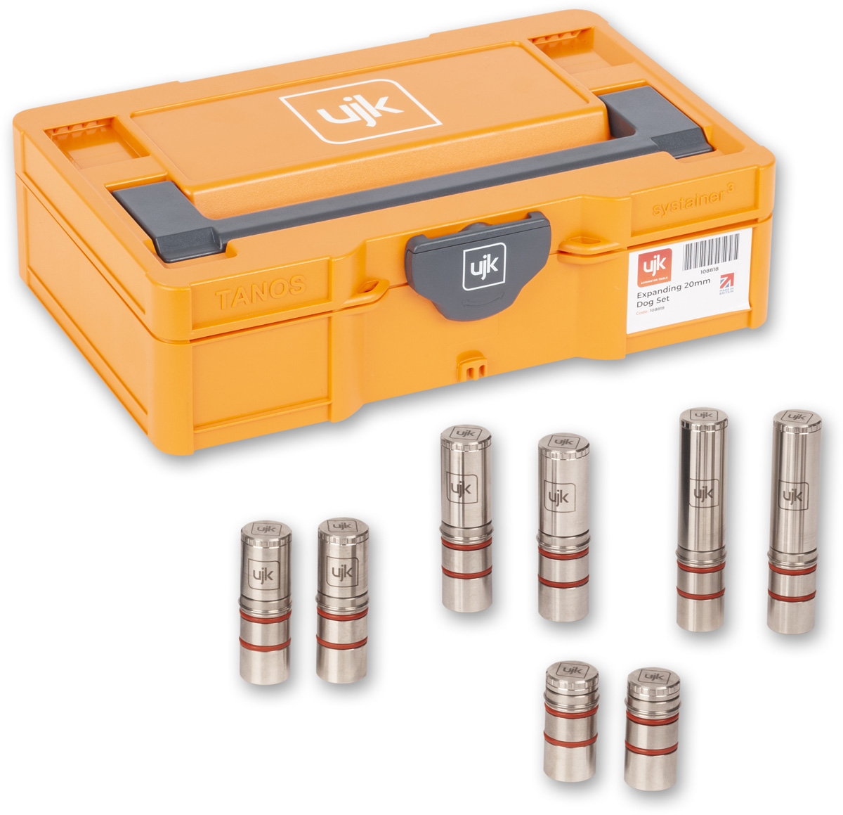 These compact 'pups' offer all the benefits of the UJK Super Dogs but smaller! With an innovative and simple twist-lock mechanism, eliminating any play and ensuring zero movement for the most precise tasks. Compatible with any 20mm hole system, including the UJK Multifunction workbench. Paired with the UJK Chamfer Ring for flawless 90° alignment. British made from stainless steel, these dogs have exacting accuracy and durability.
