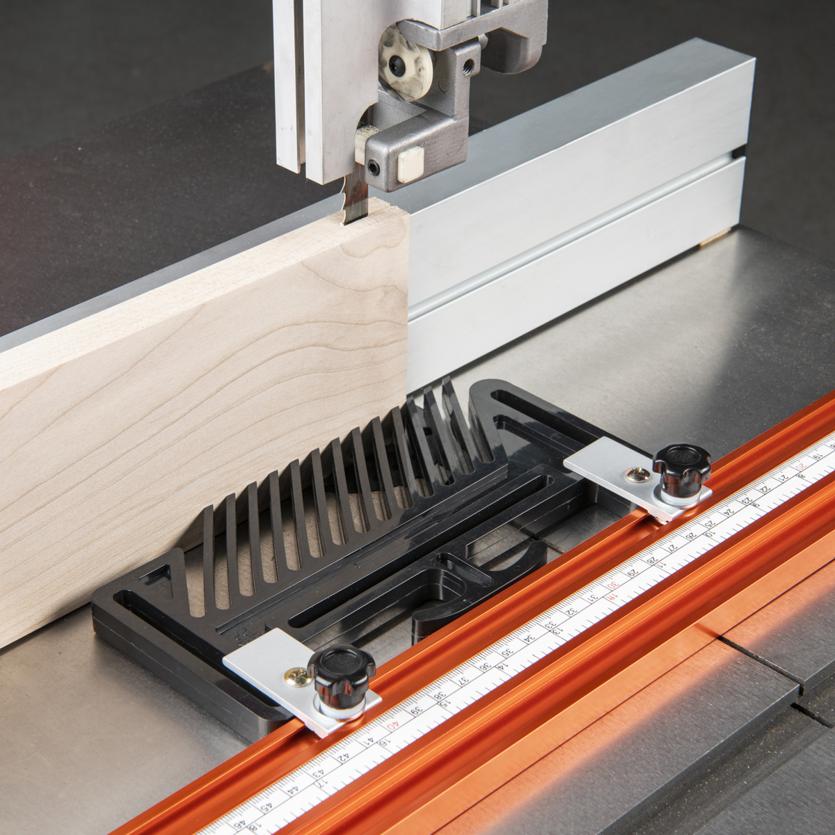 • Allows use of a feather board on a router table, bandsaw etc