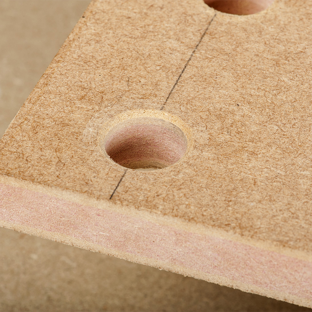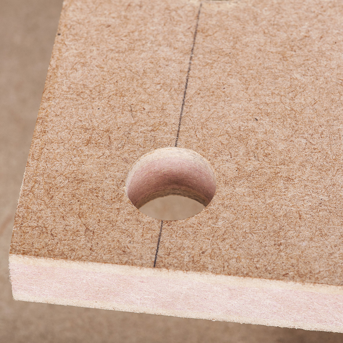 A shallow chamfer not only maximizes the UJK Super Dog's use with its stop collar but also safeguards the hole's edges against damage from frequent use of dogs, clamps, and accessories.