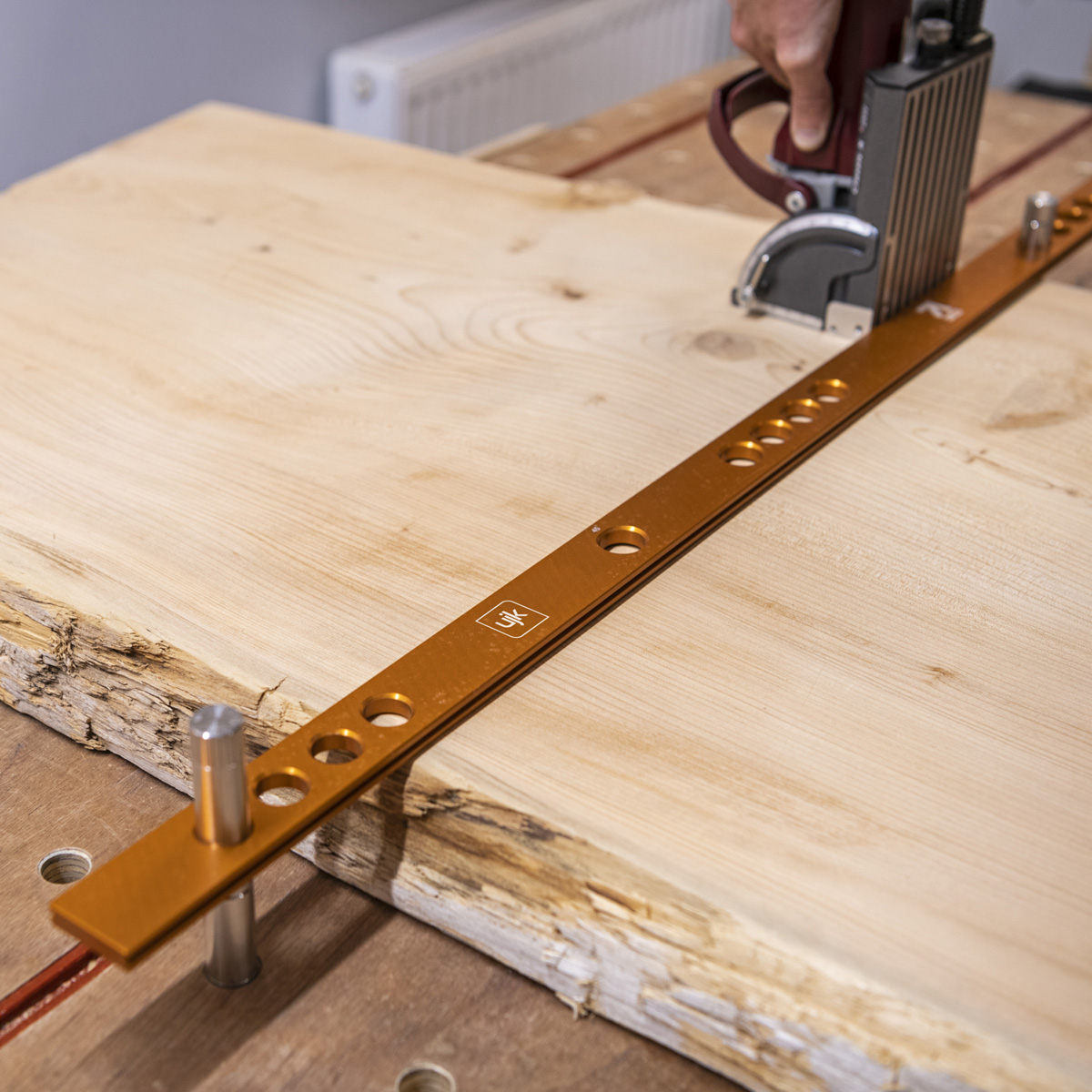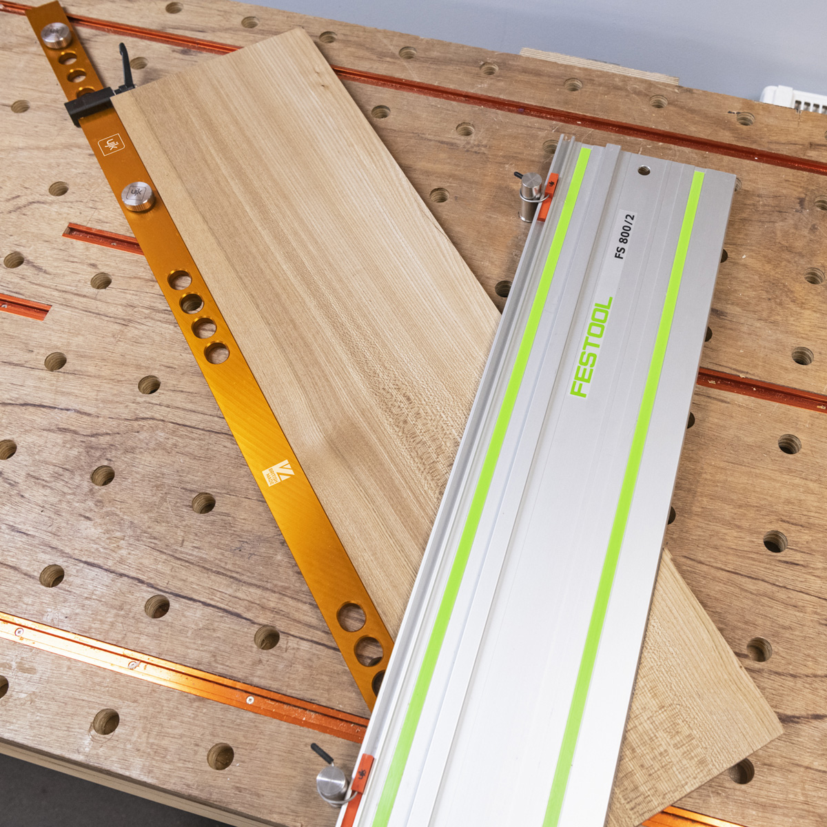 This kit is designed to work with the UJK Parf Guide System, UJK multifunction worktops, and MFT benches, for cutting, marking, drilling, or assembling.