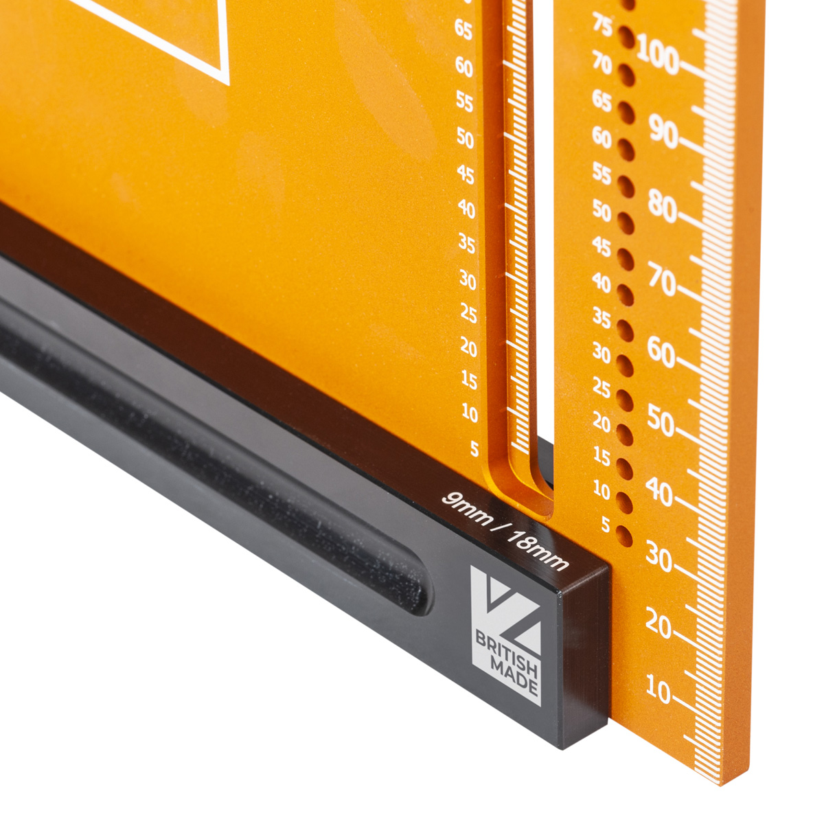 Mark 90° and 45° instantly, or swing smoothly from 10° to 90° using the precision pivot. Scribe dead-straight lines along a board using the tapered pencil holes for repeatable accuracy. Inside and outside scales make machine setup or jig work simple and reliable. Radius guides and dual-thickness butts make centre-finding and easing sharp edges quick and consistent.