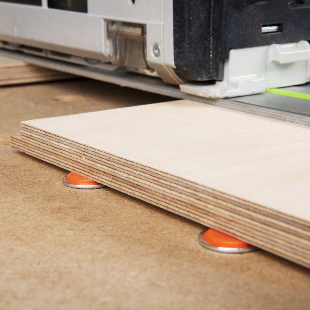 UJK Anti-Slip Workbench Protection Dogs raise your workpiece slightly, allowing you to use a guide rail and plunge saw without scoring or damaging your workbench. Work is held by friction alone, fitting into any 20mm chamfered dog hole the Anti Slip Workbench Protection Dogs provide full access to your workpiece's surface without mechanical clamping.