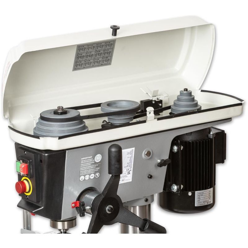 - Enhanced Safety System: The electronically interlocked chuck guard and integrated belt cover safety switch prevent the machine from being accidentally turned on or running with the cover open, ensuring maximum safety.