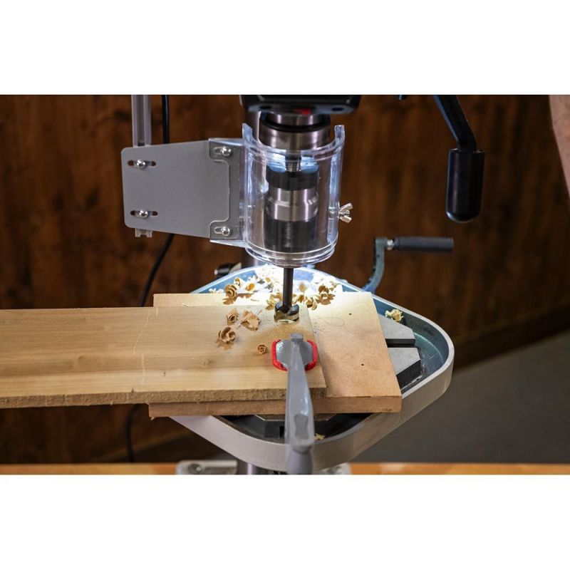 - Safety is a top priority with the AP20BD. It comes equipped with an electrically interlocked chuck guard that prevents the machine from being accidentally turned on, and an integrated belt cover safety switch that stops the drill from running with the cover open. Additionally, the adjustable LED work lamp provides excellent visibility of the workpiece, ensuring precise and safe drilling operations.