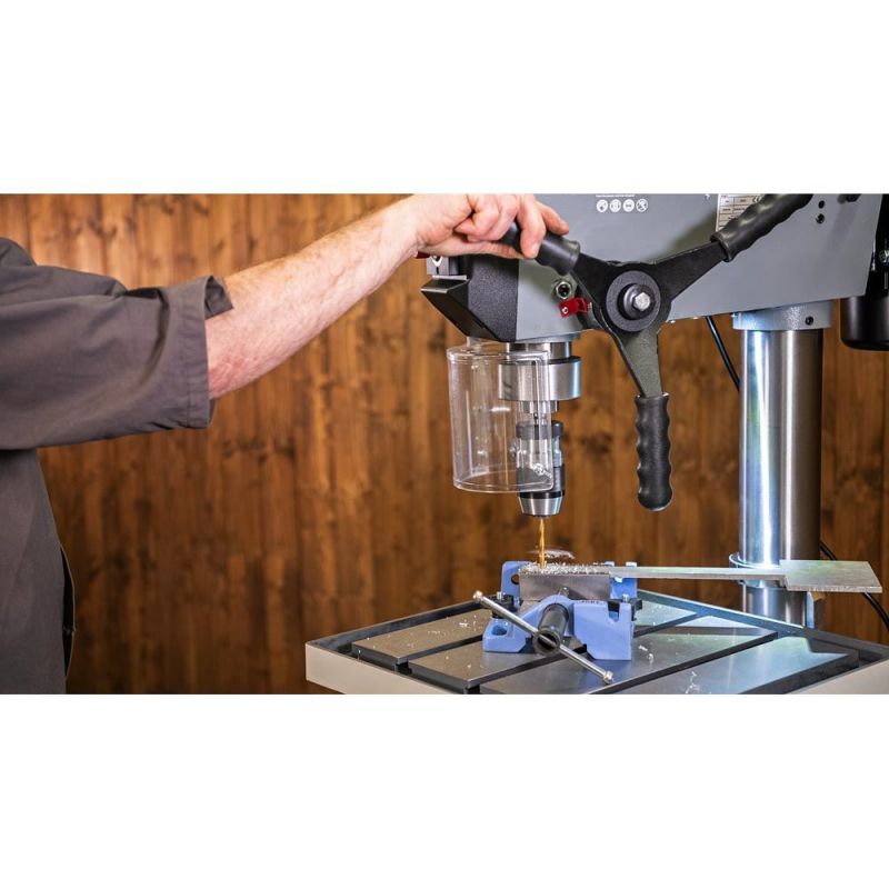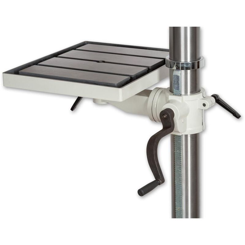 - Polished Cast Iron Table: The (290 mm x 290 mm / 345 mm x 345 mm / 475 mm x 425 mm*) cast iron table provides a strong and rigid work surface, ensuring stability and durability during drilling operations.