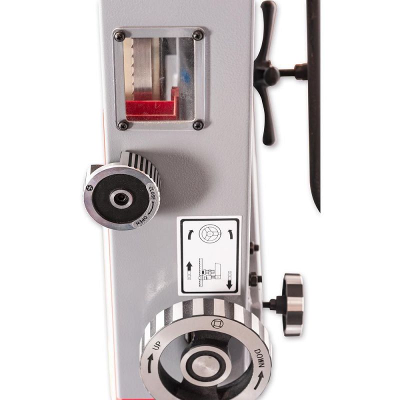 • You can rest assured that this machine meets all safety requirements: it features a key switch for extra safety when away from the machine, as well as an emergency stop switch. Dual dust extraction ports provide efficient methods of dust extraction to keep your workshop clean and dust free.