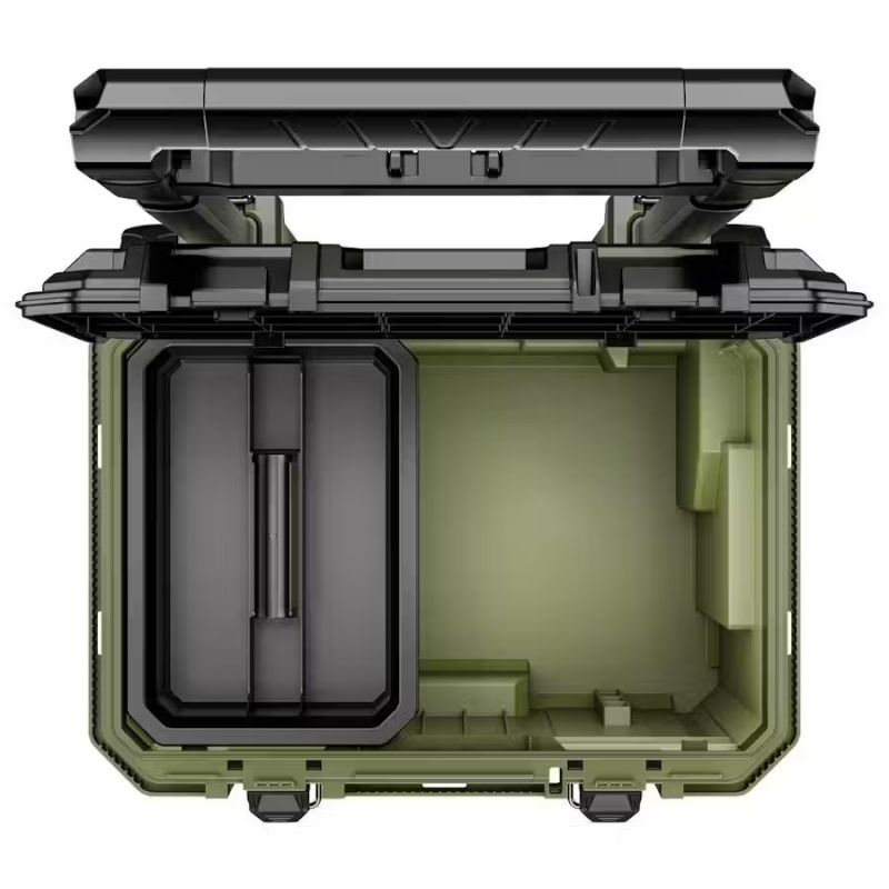 - This wheeled tool box can provide the base for your stack when transporting your tools between jobs. Constructed from high-impact resistant polypropylene, this rolling tool box offers exceptional durability. Its fast and reliable interlocking mechanism ensures that your stack remains stable, no matter the conditions. With IP65 protection against water and dust, this system effectively shields your valuable tools from the harsh elements and jobsite debris.