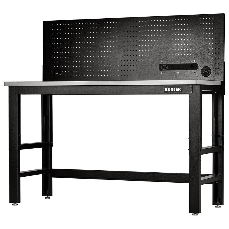BUNKER Workbench with Stainless Steel Worktop and Power Pegboard, 1550mm