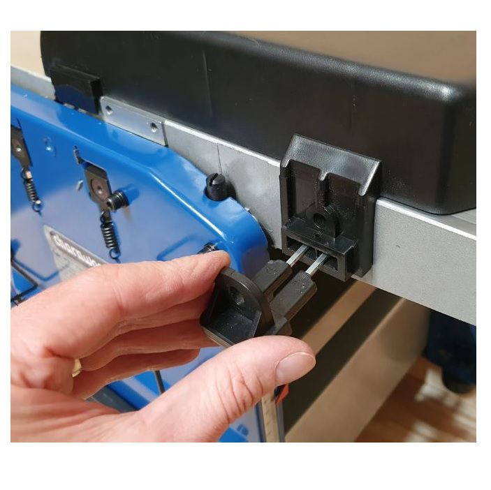 - The redesigned dust hood now has a quick action clamp to allow faster removal when changing between Planing and thicknessing modes. The hood fits onto the thicknessing bed during planing operations and is then moved over the top when thicknessing. As a safety feature a location sensor detects that the dust hood has been correctly fitted before allowing the motor to run.
