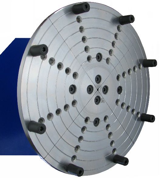 - The jaws are 210mm diameter when closed, 268mm diameter when opened. The work piece is held in place by 8 rubber coated fixings which can be fitted in 6 different positions on the jaws depending on the diameter required.