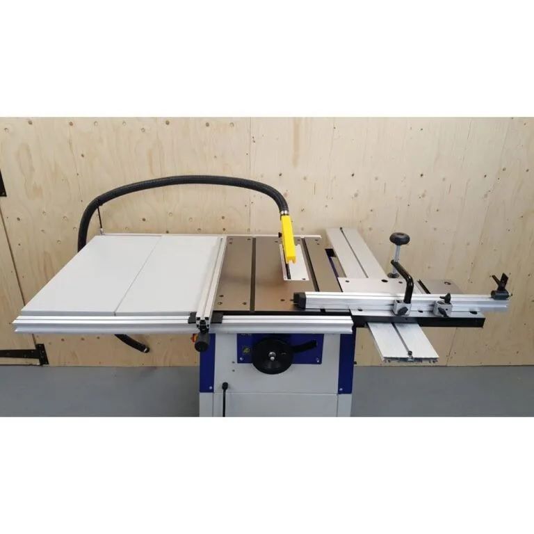 • Supplied with 36 tooth TCT saw blade, sliding table, sliding mitre fence, side extension tables, floor stand, 4 adjustable feet, push stick, 1.7m power cable and UK 3 pin plug.