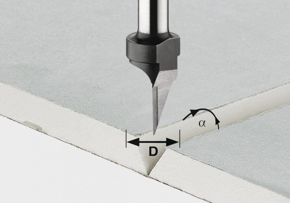 Festool 491000 Plasterboard V-Groove Cutter - 45 Deg x 12.50mm Dia x 8mm Shank HW