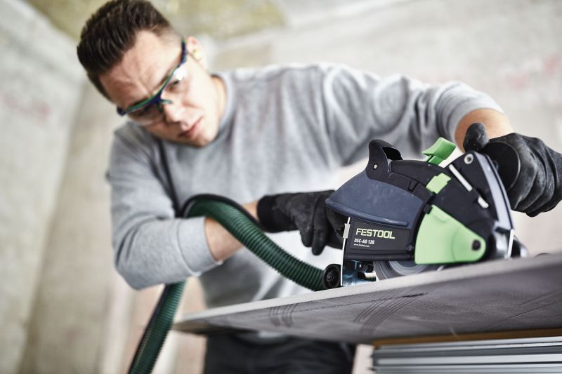 - Unbeatable precision: The Festool DSC-AG 125 diamond cutting system with its efficient dust extraction system protects your health when working. In combination with the Festool guide rail, precise cuts can be made to doors, windows, grooves and expansion joints in the floor area.