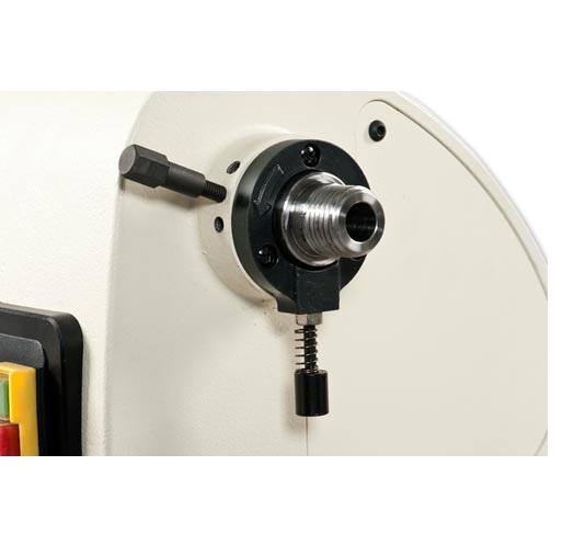 • Spindle lock on the front of the headstock to easily change the faceplate and turning chuck