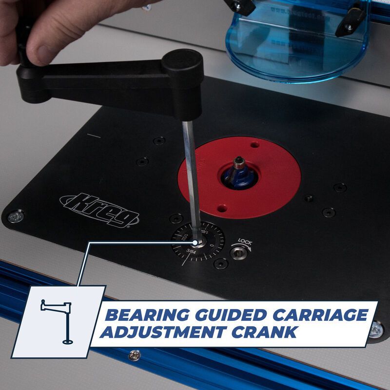 - The Precision Router Lift helps you elevate your routing capabilities. It does this by providing precise control when making router setup changes or changing bits. The lift replaces the standard insert plate in a router table (the 3/8” x 91/4” x 113/4” plate fits all Kreg router tables plus many popular brands) and accepts popular router models—without the need for adapters or modifications—in a high-performance carriage that you raise and lower from above the table.