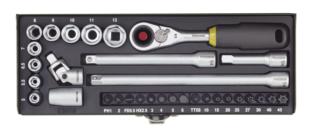Proxxon Socket Set with Ratchet - 32pc 1/4" Drive Magnetic Inserts - 23078