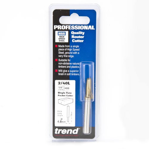 TREND 2/40Lx1/4HSS Professional Pocket Router Cutter 4.8mm dia x 19mm Cut