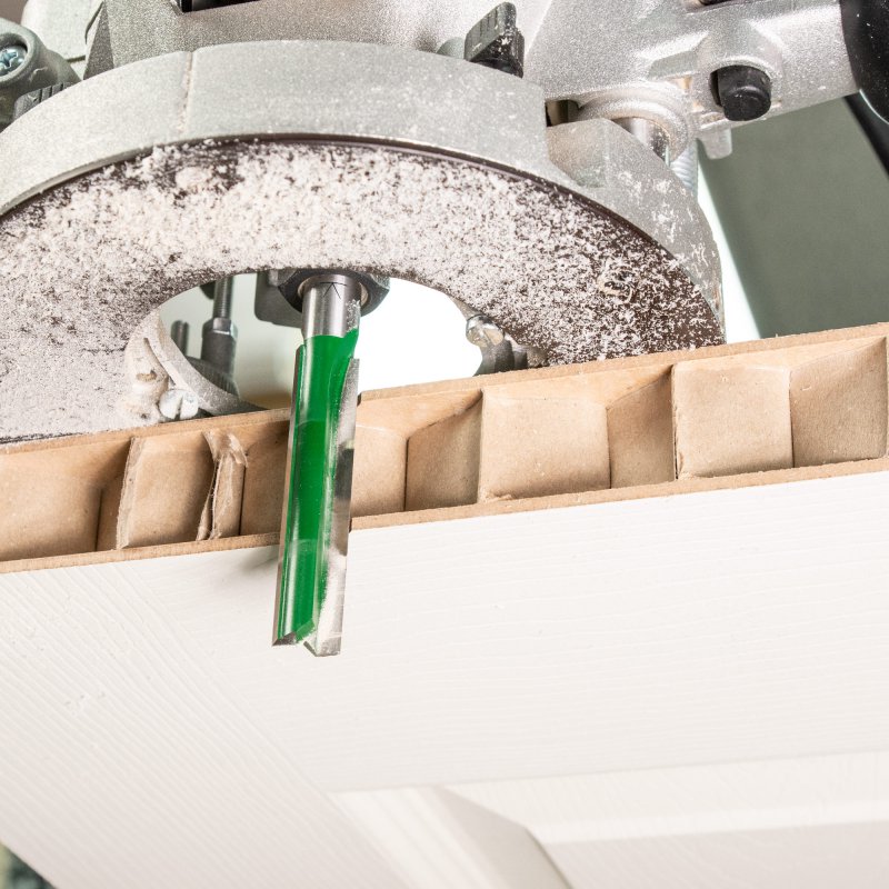 - Deep cutting profile for edge trimming and making templated cut outs on hollow core worktops and wall panels.