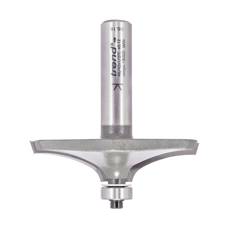 Trend 46/42x1/2TC Pro Guided Thumb Mould Router Cutter 44mm Radius x 69.2mm Dia x 1/2 Shank