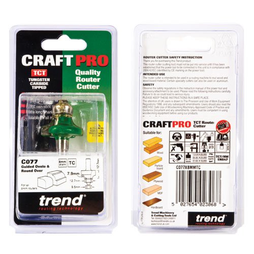 Trend C077X8MMTC CraftPro Guided Ovolo Roundover Router Cutter 7.9mm Radius x 8mm Shank