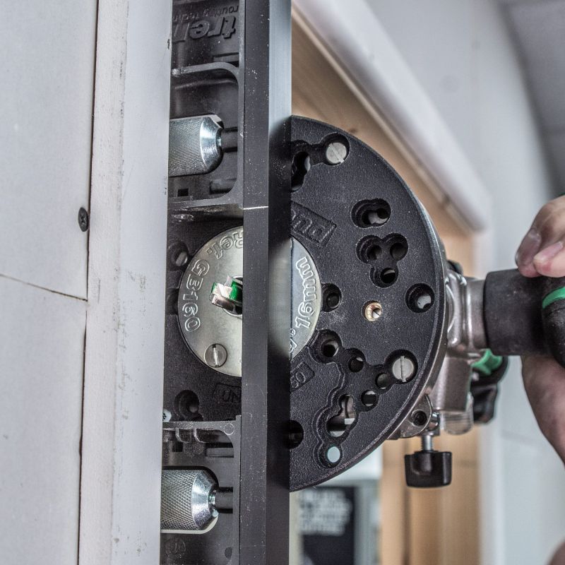 - Precision Centring System ensures perfect concentricity between cutter and guide bush for pinpoint accuracy with routing jigs.