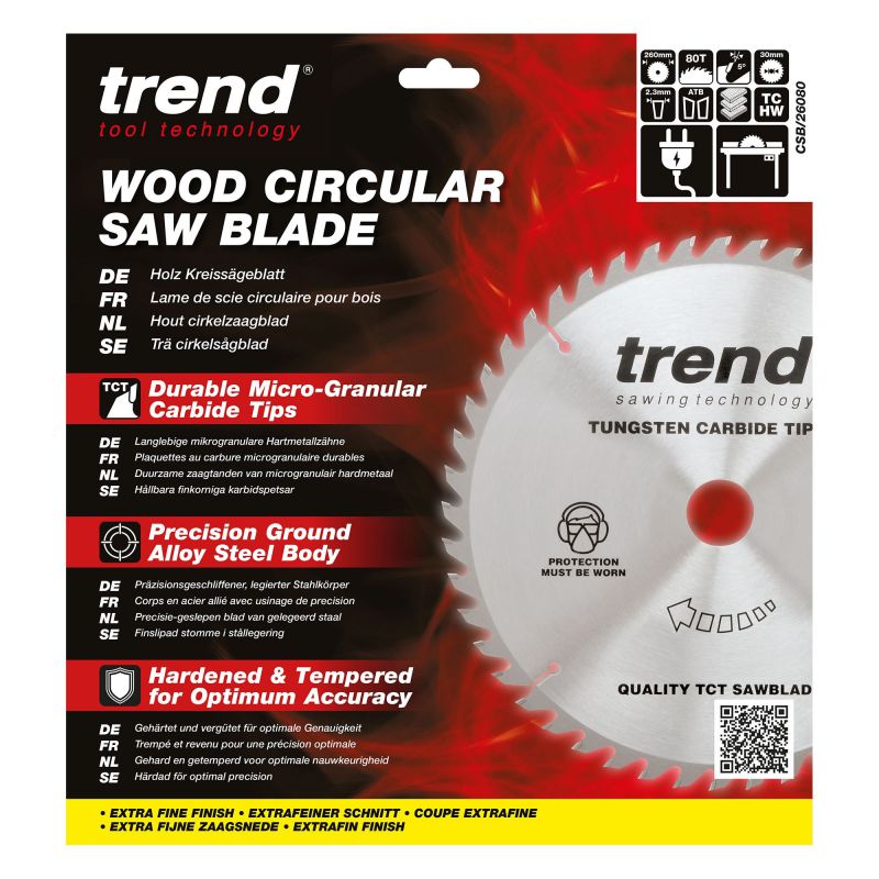 Trend Wood Circular Saw Blade - 260mm dia x 2.3 kerf x 30 bore 80T
