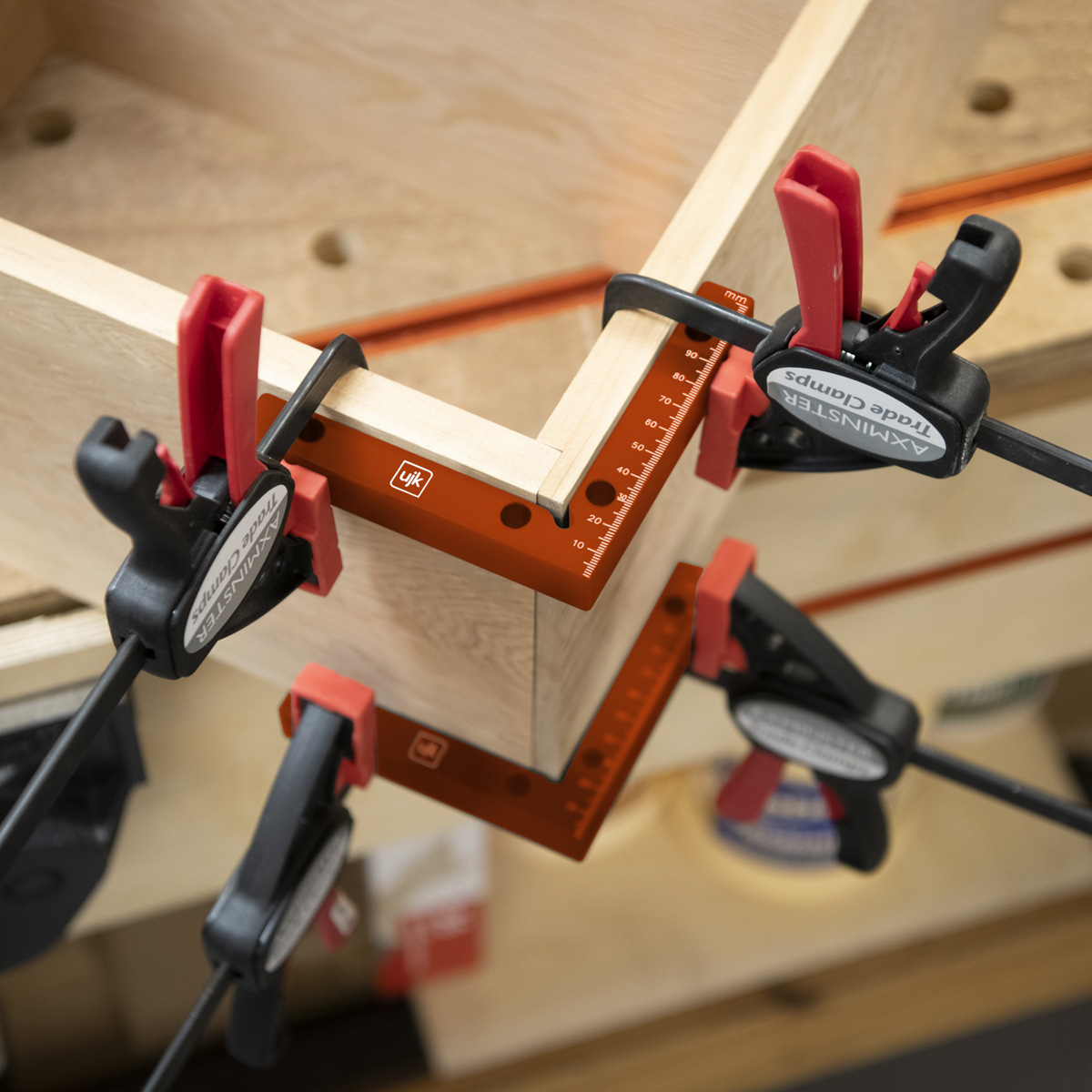 - The UJK Assembly Squares are indispensable tools that are the cornerstone for creating perfect right angles and ensuring your projects are squared and true. The UJK Assembly squares streamline your setup, ensuring saws, bandsaws, and fences are at precisely 90°. The graduated arm, marked in both metric and imperial, starts at the corner, doubling as a height gauge. Clamp them to secure drawer or box corners, on internal and external angles. The notched corner ensures full contact for accuracy, while the holes accommodate UJK Fence Clamps for a seamless clamping. British Made from high-quality aluminium, these squares are not only durable but also engineered for longevity, ease of use and versatility.