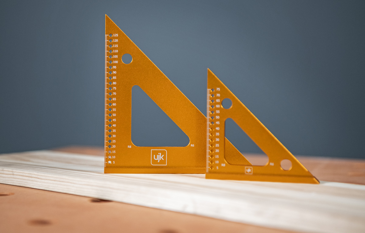- The UJK Compact Speed Square is the tool for woodworkers who need precision measuring on the go. British made, compact, sleek, and practical, its design for precision work in tight spaces, detailed joints, verifying right angles, and an inside edge radius for marking boards. Manufactured from aluminium, guaranteeing accuracy and durability. The vertical edge is graduated in 5mm or 1/8" increments, with accurate measuring holes for use with a Pica pencil. Enjoy portability and precision with this clever UJK tool.