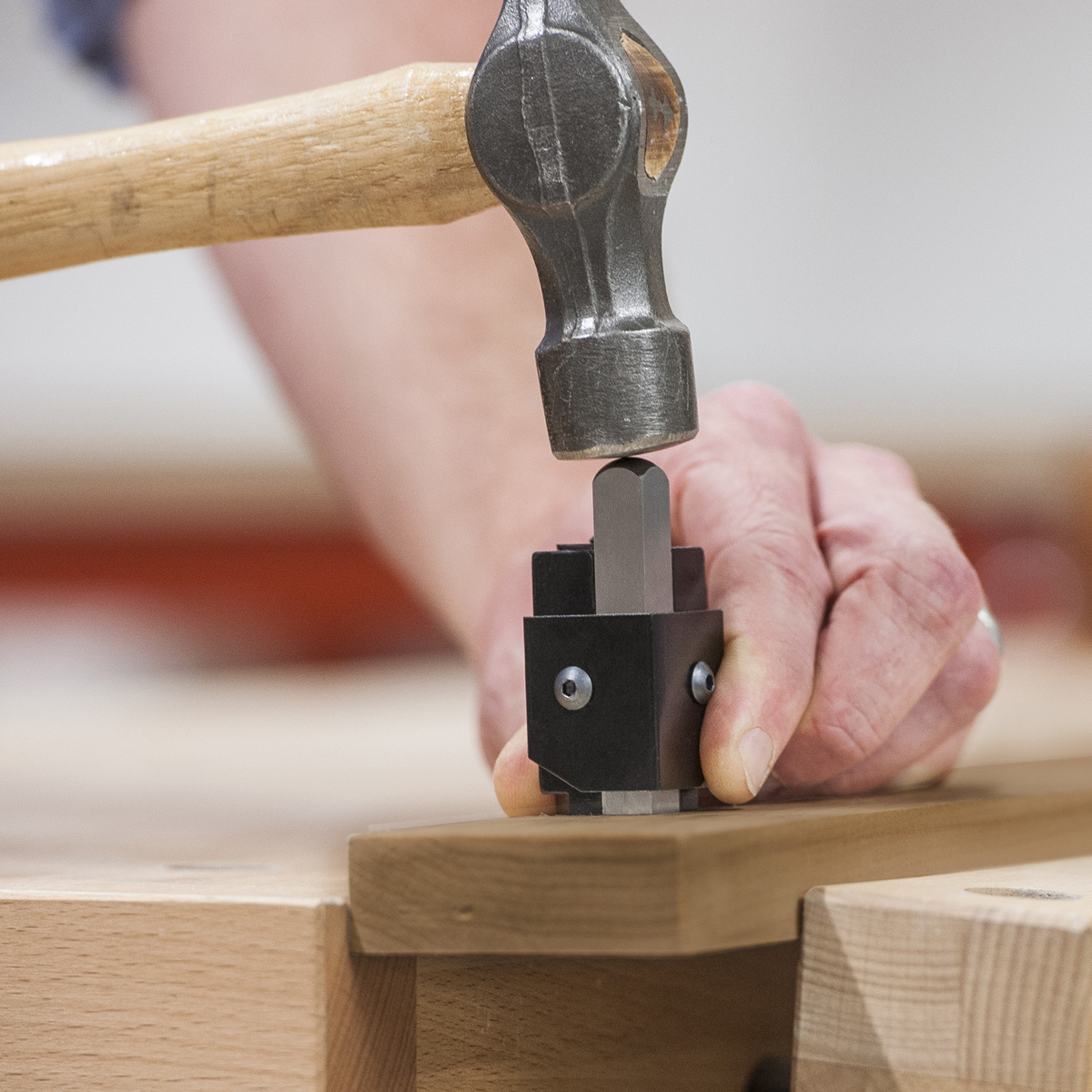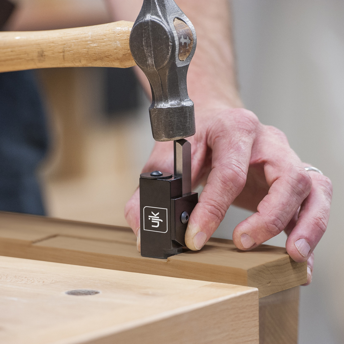 - The blade is tungsten steel, sharpened to a perfect 90° corner. The steel body has locating lugs, which automatically align the chisel. A sharp tap with a hammer and the spring loaded chisel cleanly cuts the corner. Pare away the little piece of waste for a perfect cut every time.