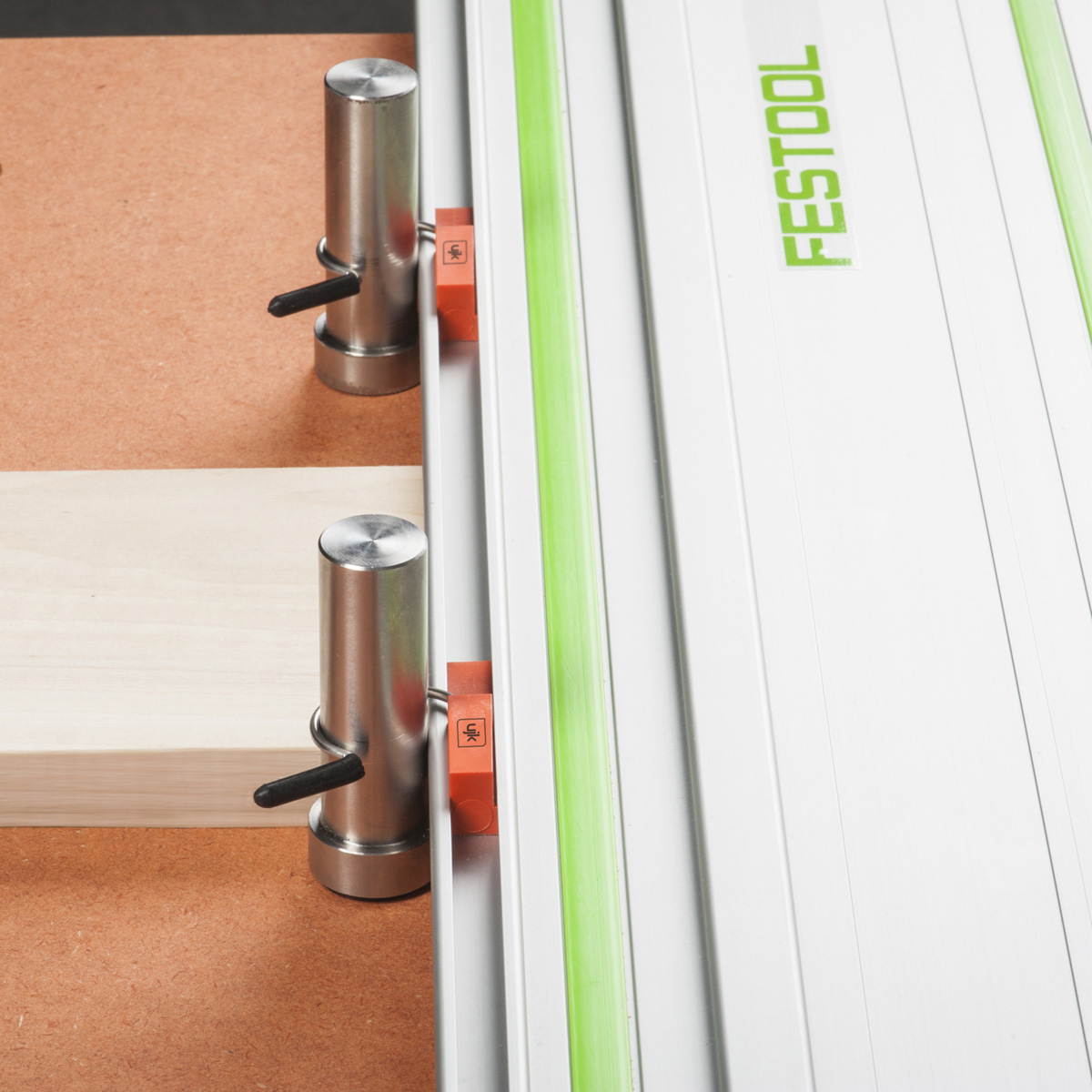 - The UJK Dog Rail Clips are ingeniously designed to attach to any standard 20mm dog holes on your workbench, using a UJK dog, allowing for a quick and secure connection of guide rails. Whether you're sawing, routing, or planning, the UJK Dog Rail Clips ensure your guide rails stay firmly in place, are kept square and provide a stable and reliable guide for precision cuts.