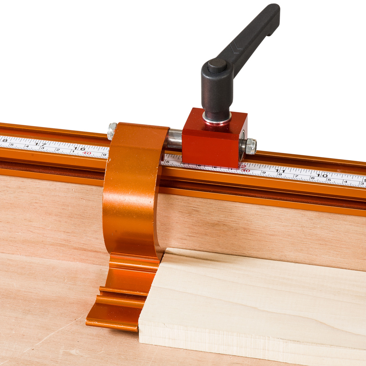 - The UJK flip stop fits into an 8mm T-slot. Use it on your existing fence rail. As an additional flip stop with the UJK Track & Stop it gives you the potential of having two common length settings without the need to reset from one to the other.