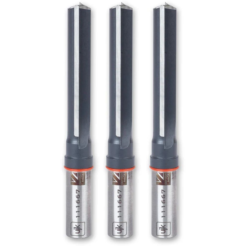 - Set of three UJK Kitchen Fitters Straight Router Cutters, in 12.7mm diameter.