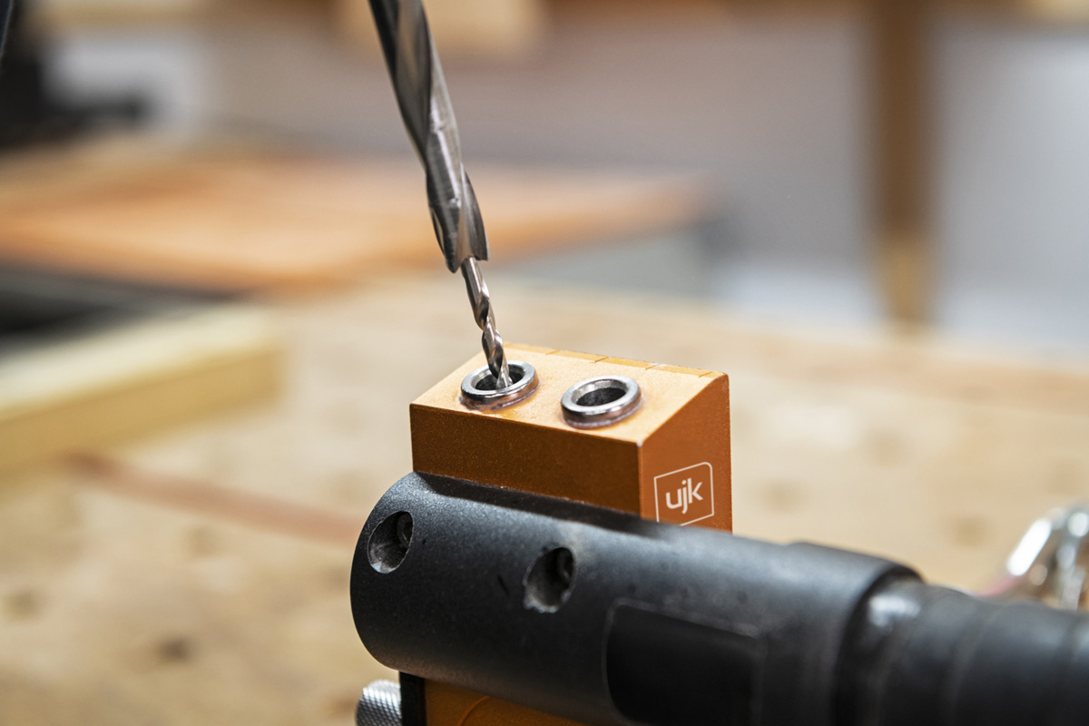 The UJK Pocket Hole Drill Bit Complete Package – your go-to for precise and efficient pocket hole drilling. This all-in-one kit features the UJK Pocket Hole Drill with a 12mm Bit, UJK Stop Collar, three replacement Drill Tips (30mm, 22mm, and 12mm) and Drift Pin. Upgrade your pocket hole drilling game with the UJK Pocket Hole Drill! The drift pin allows for easy pilot drill tip removal, and the replacement tips Manufactured from durable M2 Steel. The drill bit's unique shape is great for wider joints, making them stronger. Its design quickly clears waste for fast, clean results. It works seamlessly with all pocket hole jigs including the UJK Pocket Hole Jig, as well as Festool Centrotec systems, fitting perfectly with your existing tools. Manufactured in Austria, the UJK Pocket Hole Drill combines high-quality engineering with precision and durability, making it an essential tool for creating strong, hidden joints in your woodworking projects. Compatible with Kreg and Trend pocket hole jigs. For best results, use dust extraction with Pocket Hole Jigs and accessories.