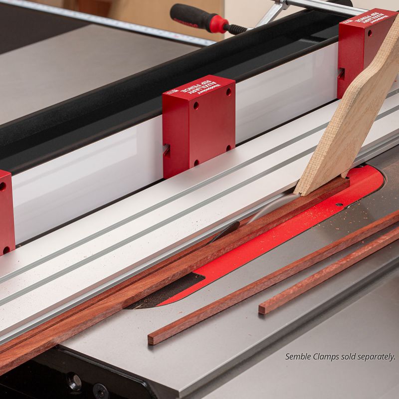 - The Auxiliary Rip Fence is built with our SuperTrack…the foundation of our famous SF-PRO router table fence. At 48" long and over 3- 1/2" tall, it's much longer, taller and (most importantly) straighter than your standard table saw fence. You can position the extra length of the Auxiliary Rip Fence exactly where you need it; in front of the blade, behind the blade or split it down the middle…whatever improves the cut quality and your safety. What's more, by simply clamping to the old fence, the Auxiliary Rip Fence fits on virtually any table saw fence ever made…new or old, big or little, top-end or entry level. If for some reason you need to make a cut without the Auxiliary Rip Fence, it takes just seconds to remove, and just the same to put it back on.