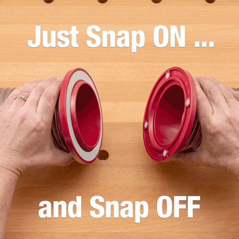 - Woodpeckers MagQuick Dust Ports use rare earth magnets to make swapping your dust collector hose a simple and painless task. By connecting the magnets to a steel ring (instead of magnets to magnets), you'll never have an issue with polarity alignment and you'll only have to buy one magnetic connector. We also designed an internal bevel at the point where the two fittings meet. The bevel guides the connection into proper alignment as the magnets pull the fittings together. On the outside of the fittings you'll find another bevel that slides into flexible hose without a struggle and a groove around the fitting so your hose clamp creates a perfect seal and will never slip. The 3 different robust fittings are injection-molded from high-strength ABS. The Collector-Side fitting has the magnets. The Inline Machine-Side fitting has a steel ring and connects hose to hose. The third fitting is a Surface-Mount adapter you can use to build customized collection ports.