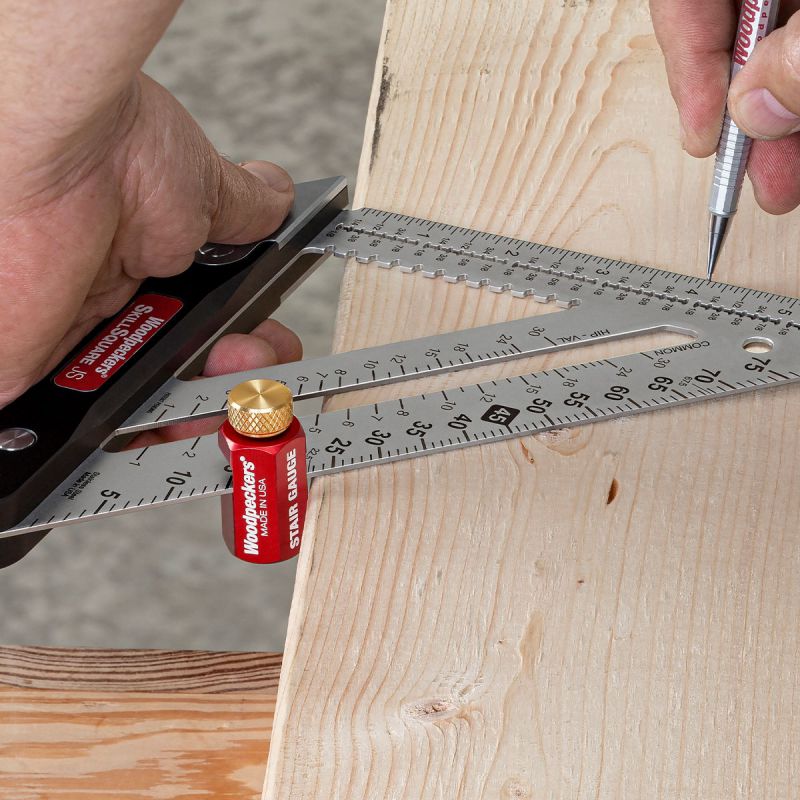 - How do you use them? First, let’s look at the most obvious choices in the Woodpeckers line-up…DelVe Squares and SkillSquares. Repetitive angle marking is as simple as clamping a stair gauge on at the desired angle. Now, no matter how many times you need to mark the angle, it will be exactly the same as the first. Whether you’re marking miter cuts, rafters, stair stringers, or any other angled layout, your speed, accuracy and consistency just took a giant leap forward. This nifty trick also works with any other brand of carpenter’s square that has angle graduations.