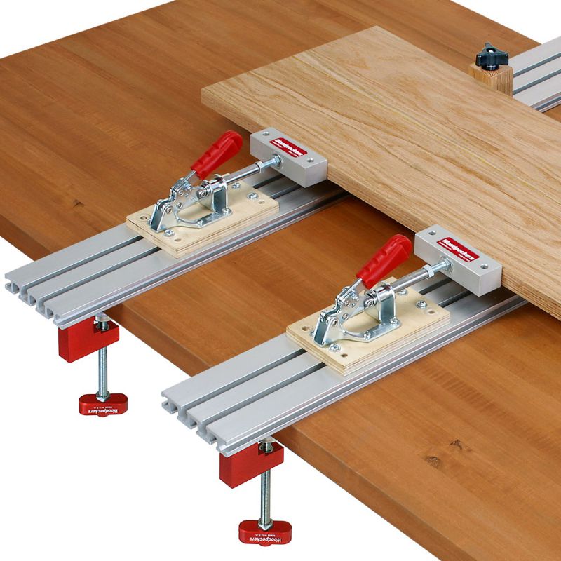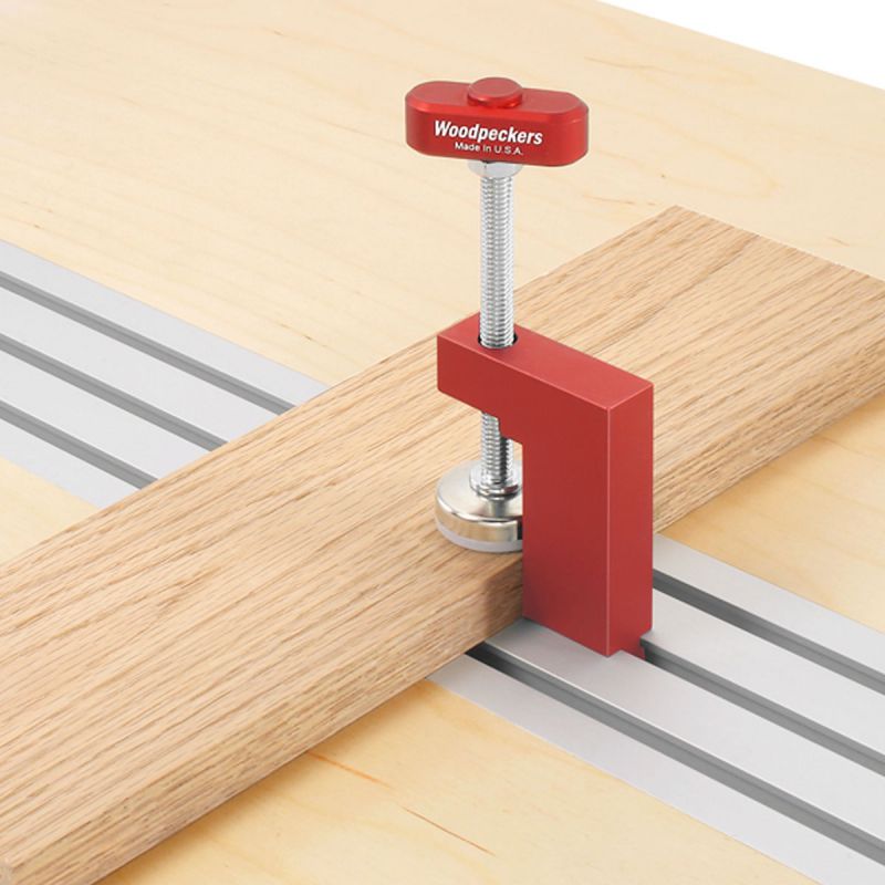 - WOODPECKERS SUPER TRACK is a, heavy-duty, general purpose T-Track for a variety of woodworking applications. Super Track has (7) “T” shaped tracks distributed around all four sides. These tracks fit any standard 1/4” fastener such as 1/4” hex nuts, hex head bolts and 7/16” wide oval nuts. In fact it's these very tracks that make SUPER TRACK so easy to install. Simply drill holes in the work surface, drop in some 1/4-20 hex head bolts and slide in SUPER TRACK. Very simple, very easy. A big advantage bolting from the bottom has over screwing down from the top is resistance to pullout. Bolting from the bottom had dramatically greater resistance to pull out.